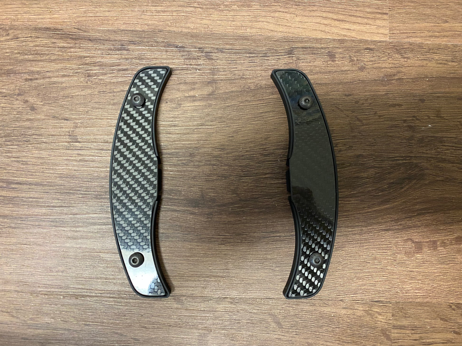 USED- GRP machined aluminum and carbon fiber paddle shifters for Lotus Evora, Evora S, 400, and Evora GT.